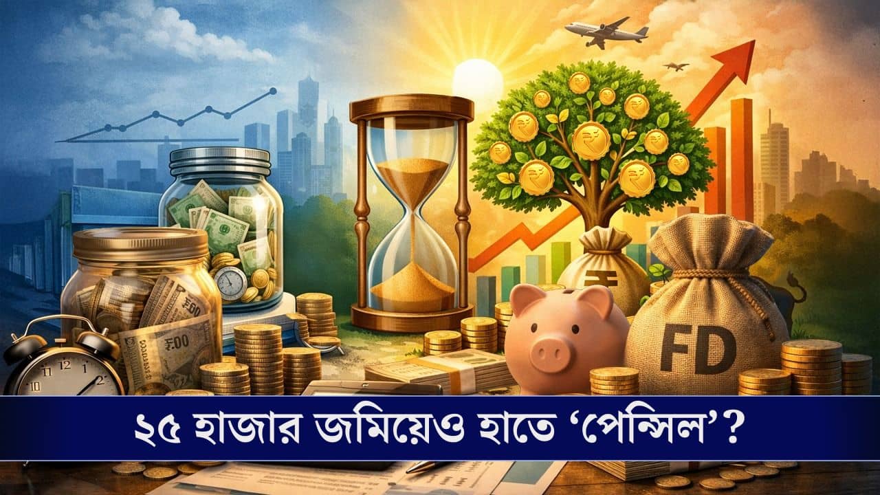 প্রতিমাসে ২৫ হাজার টাকা যদি কেউ জমাতে পারেন, তাহলে সেটা সত্যিই একটা বিরাট বড় ব্যাপার। শৃঙ্খলা মেনে ধারাবাহিক ভাবে এই সঞ্চয় আপনাকে দেশের বেশিরভাগ মানুষের থেকেই অনেকটা এগিয়ে দেবে। আপনার ব্যাঙ্ক ব্যালেন্স বাড়ছে দেখলে আপনারও মনটা শান্ত থাকবে। মনে করবেন, সত্যিই আপনার ভবিষ্যৎ আপনার নিয়ন্ত্রণে।