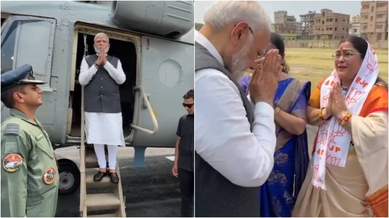 পটনা: নরেন্দ্র মোদী কোনও ব্যক্তির নাম নয়, এক আবেগের নাম। সোমবার (১৩ মে), লোকসভা নির্বাচন ২০২৪-এর চতুর্থ দফার দিন আরও একবার প্রমাণ হল। এদিন, নির্বাচনী প্রচারের কাজে বিহারের সরনে পা রেখেছেন মোদী। হেলিকপ্টারের করে সভাস্থলে এসে পৌঁছন নমো। বন্দে মাতরম এবং জয় শ্রীরাম স্লোগানে তাঁকে স্বাগত জানান স্থানীয় বিজেপি কর্মীরা। বরাবরই মহিলাদের মধ্যে বিশেষ জনপ্রিয়তা রয়েছে নরেন্দ্র মোদীর। বিশ্লেষকরা বলেন, নরেন্দ্র মোদীর ভোটারদের একটা বড় অংশ মহিলা। হেলিপ্যাডে মোদীকে স্বাগত জানাতে উপস্থিত ছিলেন বিজেপির দুই মহিলা কর্মীও। হাতের সামনে নরেন্দ্র মোদীর মতো ব্যক্তিত্বকে পেয়ে আবেগে ভাসলেন তাঁরা।