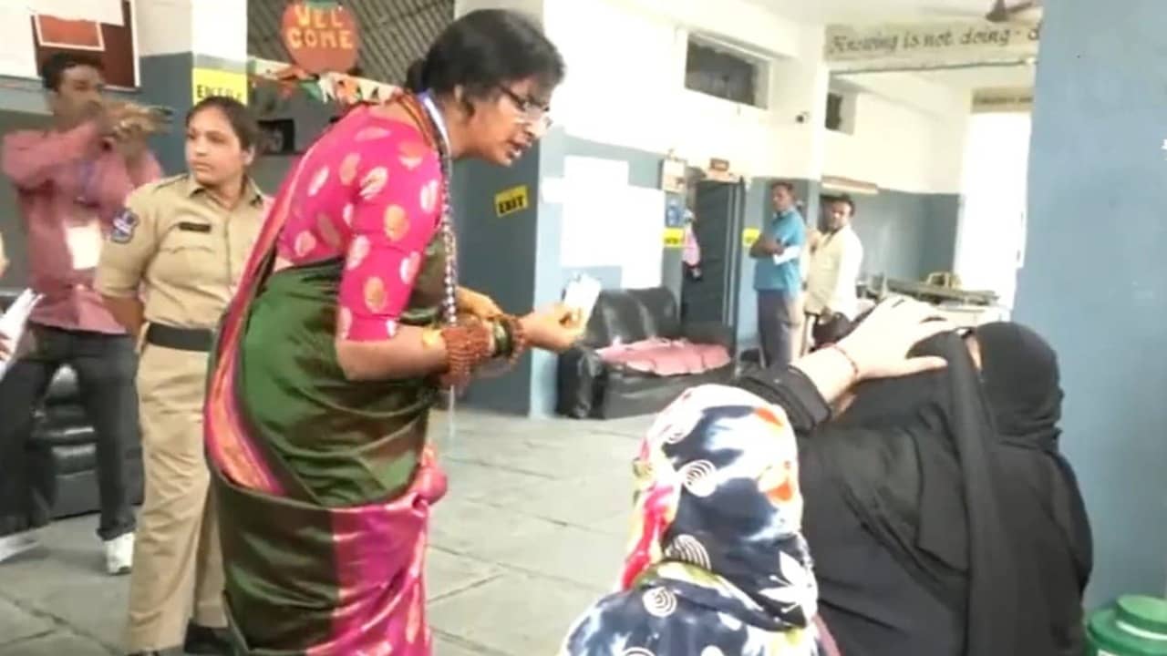 #WATCH | Telangana: BJP candidate from Hyderabad Lok Sabha constituency, Madhavi Latha visits a polling booth in the constituency. Voting for the fourth phase of #LokSabhaElections2024 is underway. pic.twitter.com/BlsQXRn80C
