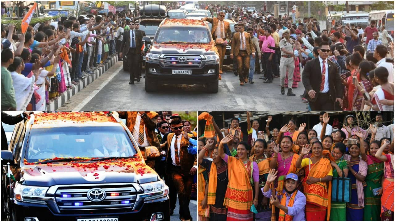 অসমের রাজধানীতে মানুষের উষ্ণ অভ্যর্থনা পেলেন প্রধানমন্ত্রী। প্রধানমন্ত্রী নরেন্দ্র মোদীকে চোখের সামনে পেয়ে উচ্ছ্বাসে ভাসেন গুয়াহাটির মানুষ।