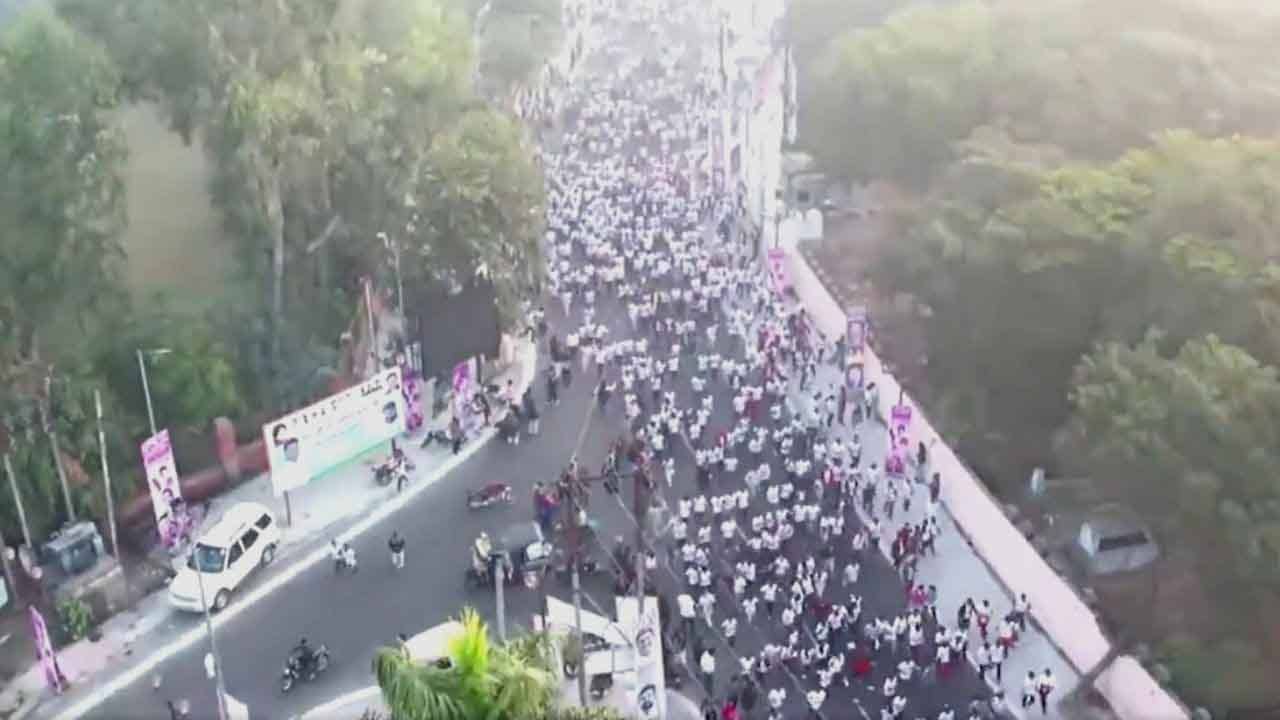 টুইটার এবং অন্যান্য সোশ্যাল মিডিয়া প্ল্যাটফর্মগুলিতে কংগ্রেসের তরফে একটি ভিডিয়ো শেয়ার করা হয়েছে। তাতে দেখা যাচ্ছে, কংগ্রেসের ডাকা ম্যারাথনে ভিড় জমিয়েছেন কয়েক হাজার মহিলা। উল্লেখ্য, উত্তর প্রদেশে ওমিক্রনের সংক্রমণ পরিস্থিতির কথা মাথায় রেখে এই রাজনৈতিক কর্মসূচির অনুমতি দেয়নি জেলা প্রশাসন। কিন্তু অনুমতি না পাওয়া সত্ত্বেও লখনউ এবং ঝাঁসিতে বিশাল সংখ্যক মহিলাদের সমাবেশ দেখা গিয়েছে রবিবার সকালে। ঝাঁসিতে মহিলাদের পুলিশ আটকানোর চেষ্টা করে। কিন্তু মহিলা ফিরে আসতে অস্বীকার করেন। তবে শেষ পর্যন্ত পুলিশ তাদের আর অগ্রসর হতে দেয়নি।