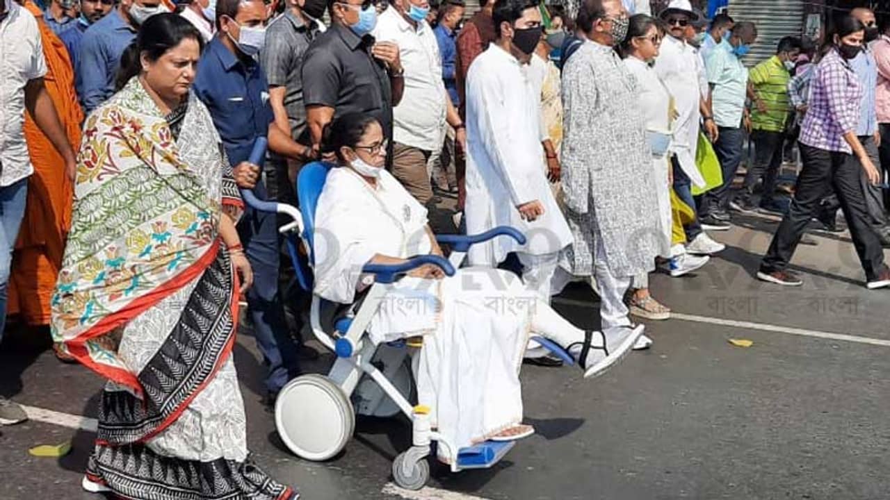 হুইল চেয়ারে বসেই এদিন মমতার হুঁশিয়ারি, “আহত বাঘ কিন্তু আরও ভয়ঙ্কর। আমাকে আহত করা হয়েছে। আমি হুইল চেয়ারে ভাঙা পায়ে সারা বাংলা ঘুরে বেড়াব। আমার যন্ত্রণা আছে, শারীরিক যন্ত্রণা। কিন্তু গণতন্ত্রের যন্ত্রণা অনেক বড়। আমার সারা শরীরে কালো চিহ্ন। কিন্তু আমি তোয়াক্কা করি না। স্বৈরাচারী শক্তির হাত থেকে আমাদের গণতন্ত্রকে রক্ষা করাই একমাত্র কাজ। অশুভ শক্তি যেন নাশ হয়। বাংলাকে ঘিরে যে চক্রান্ত, তা যেন নস্যাৎ হয়ে যায়। আমাকে ভরসা রাখুন।”