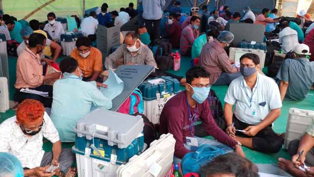 নেতাজি ইন্ডোর স্টেডিয়াম থেকে পাঁচটি কেন্দ্রের ভোটযন্ত্র বিতরণ চলছে। কিন্তু তাতে চূড়ান্ত অব্যবস্থার ছবি ধরা পড়ছে। সামাজিক দূরত্বের বালাই নেই। ভিড় যেন হার মানাচ্ছে বাজারকে। ক্ষুব্ধ ভোটকর্মীদের একাংশ। ডিসিআরসিতে মানুষ খুবই কাছাকাছি। প্রত্যেকের মুখে মাস্ক থাকলেও শারীরিক দূরত্ববিধি বজায় রাখা কার্যত অসম্ভব হয়ে পড়েছে।