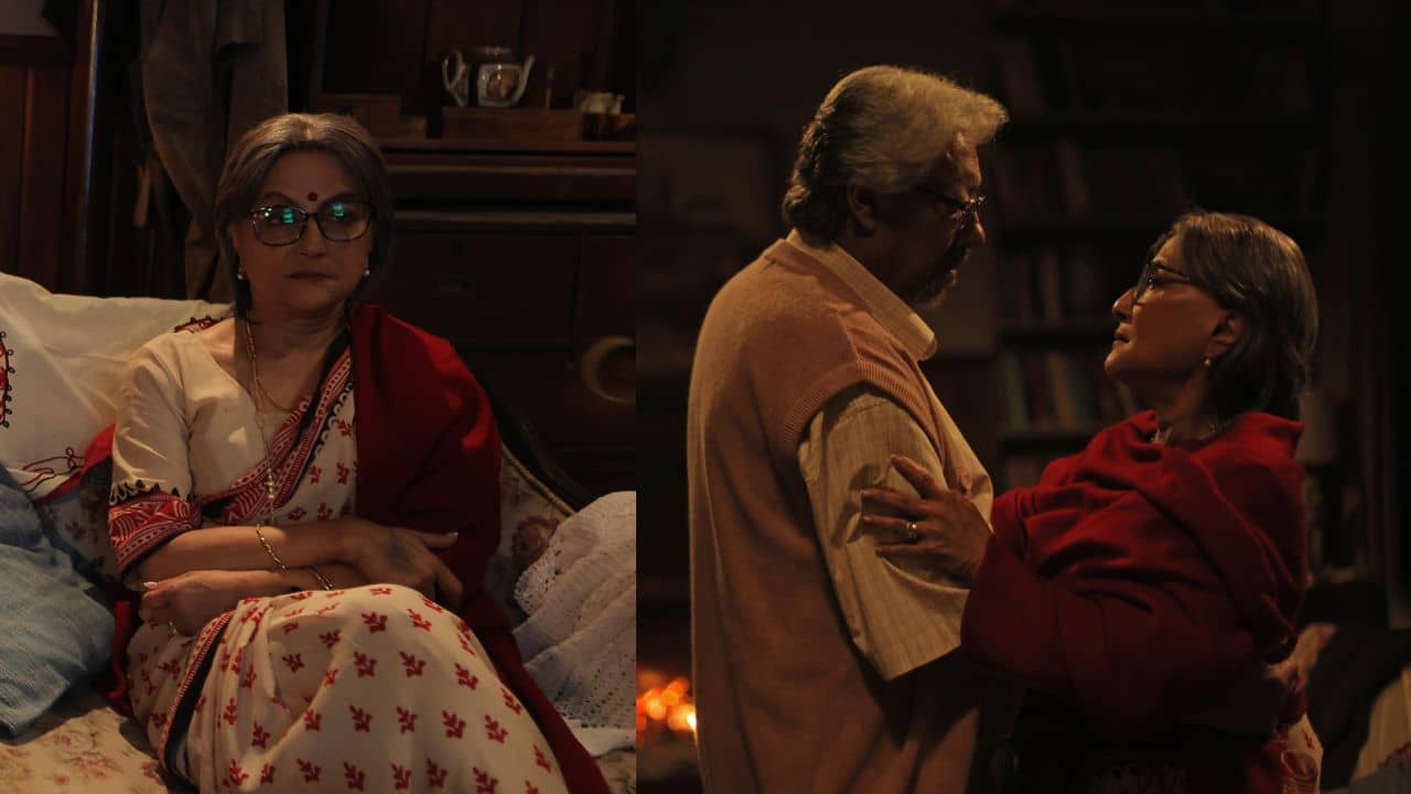 গল্পটা ধরিয়ে দিই। অপর্ণা সেন আর অঞ্জন দত্ত ছবিতে দম্পতির চরিত্রে। দুই চরিত্রের একজন ছেলে রয়েছে যে বিদেশে কর্মরত। বাবার সঙ্গে ছেলের দূরত্ব আছে। কেন? অনেক সময়ে সন্তানের সঙ্গে সম্পর্কে দূরত্বে স্তরের পর স্তর জমে। কেন, তা কেউ জানে না। মনও জানে না। এই দূরত্ব আবার একরকম ভালবাসার প্রকাশও হতে পারে! ছবিতে একটা রাতের গল্প দেখি আমরা। পাহাড়ের বাড়িতে শুধু দম্পতি। অপর্ণার চরিত্র অসুস্থ। অথচ ৫০তম বিবাহবার্ষিকীর রাত। একটু সেলিব্রেশন কি হতে পারে? চরম অসুস্থতার মধ্যে মানুষ যখন মুখে কোনও কিছুর স্বাদ পায় না, তখন হয়তো ডিমের ডালনাতেই সেলিব্রেশনের বিরিয়ানির গন্ধ থাকে। কিছুটা সাজ, যেমন ভালো একটা শাড়ি, মেকআপ। একটা মোমবাতি জ্বালানোর আবেদন। আর বাকিটা কথোপকথন। ছবিতে এই দম্পতির যে কথোপকথন দেখা যায়, সেটা বেশ ব্যক্তিগত। কিন্তু এই কথোপকথন প্রেম করার গাইডবুক হয়ে উঠেছে সংলাপ লেখার গুণে। রাত যত বাড়ে, প্রেমের বিড়ম্বনাও বাড়ে। অবশেষে ভোর কেমন? উত্তর জানতে সিনেমা হলে পৌঁছাতে হবে।