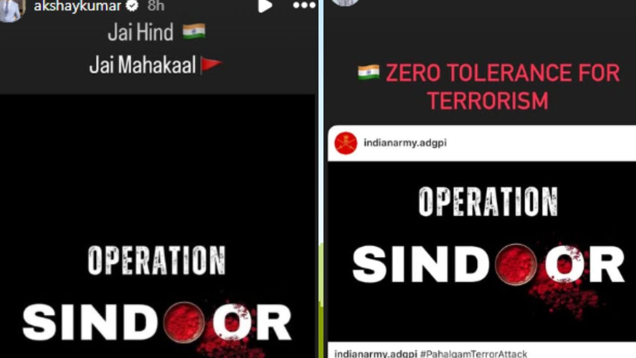 সোশাল মিডিয়ায় অপারেশন সিঁদুরের ছবি শেয়ার করেছেন অক্ষয়। ক্যাপশনে অক্ষয় লিখলেন, ‘জয় হিন্দ, জয় মহাকাল’। অন্যদিকে, সুনীল শেট্টি লিখলেন, সন্ত্রাশের কোনও জায়গা নেই। জঙ্গি কার্যকলাপ একেবারে সহ্য করা যাবে না। সুবিচার হবেই। রীতেশ দেশমুখ লিখলেন, ভারতীয় সেনার জয় হোক। ভারত মাতার জয় হোক।