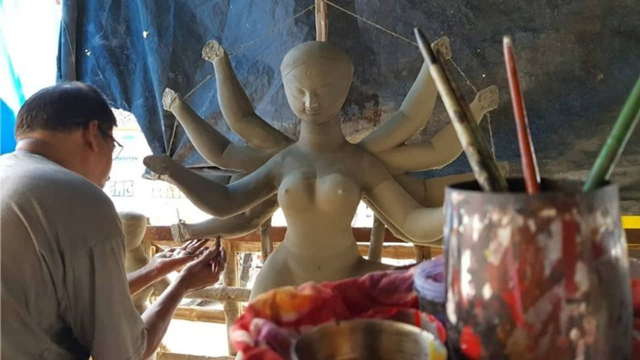 অগস্টেই পুজো। প্রতিমাও প্রায় প্রস্তুত। পুজো করবেন পণ্ডিত অজয় চক্রবর্তী। কুমোরটুলিতে বায়না দিয়েছেন প্রতিমাশিল্পী পশুপতি রুদ্র পালের কাছে। তারিখটা ঠিক মনে নেই, ডিসেম্বর মাস। আতিমারির প্রকোপ তখন কিছুটা কমেছে। পণ্ডিতজীর ফোন আসে। “একবার বাড়িতে এসো সুন্দর একটা ঠাকুর তৈরি করে দিতে হবে। নিজের মনের মত করে,” হেসে বলেন প্রতিমা শিল্পী।