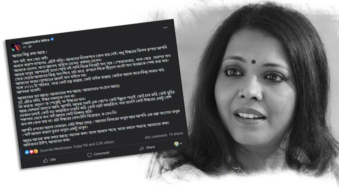 একটা লম্বা পোস্ট করেছেন গায়িকা। বেশ লম্বা। লেখার পরতে পরতে তিনি যেমন নিজের কথা বলেছেন, তেমনই নিজেদের কথাও বলেছেন। তিনি গায়িকা লোপামু্দ্রা মিত্র। তাঁর গোটা লেখায় যেমন মনখারাপও রয়েছে, তেমনই রয়েছে এক শিল্পমনস্ক মানুষের কিছু সহজ-সরল কথা।