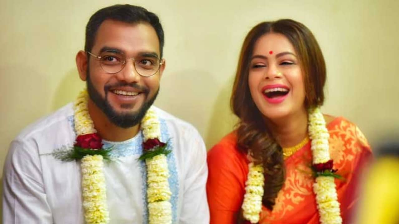 রবিবারের সকাল। লেক গার্ডেন্সের একটি নির্দিষ্ট ফ্ল্যাটে শাঁখ বাজছে ঘন ঘন। হাতে গোনা আত্মীয়-বন্ধুদের জমায়েত। মালা পরে হাসিমুখে চেয়ারে বসে রয়েছেন গায়িকা (singer) ইমন চক্রবর্তী (Iman Chakraborty) এবং সুরকার নীলাঞ্জন ঘোষ। আজ এই জুটির কাগুজে বিয়ে। অর্থাৎ রেজিস্ট্রি ম্যারেজ। খাতায়-কলমে আজ থেকেই বিবাহিত ইমন-নীলাঞ্জন।