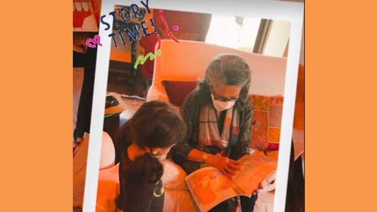 দিল্লির পতৌদি প্যালেসে কয়েক দিন হল, মেয়ে ইনায়া খেমুকে নিয়ে সময় কাটাচ্ছেন সোহা। সোশ্যাল মিডিয়ায় ইনায়ার (Inaaya Naumi kemmu) নানা মুহূর্তের ছবি শেয়ার করেন সোহা। শর্মিলার সঙ্গে ইনায়ার খুনসুটি, আদর, আবদারের মুহূর্তও ফ্রেমবন্দি করে সোশ্যাল মিডিয়ায় অনুরাগীদের সঙ্গে শেয়ার করেছেন। ছবিতে দেখা যাচ্ছে, ইনায়াকে গল্প পড়ে শোনাচ্ছেন শর্মিলা। মাস্ক পরে সব রকম সতর্কতা অবলম্বন করেছেন তিনি। আর ছোট্ট ইনায়া পাশে দাঁড়িয়ে গল্প শুনছে। সোহা ছবির উপরে লিখেছেন, স্টোরি টাইম। আক্ষরিক অর্থেই এটা গল্প শোনার সময়।