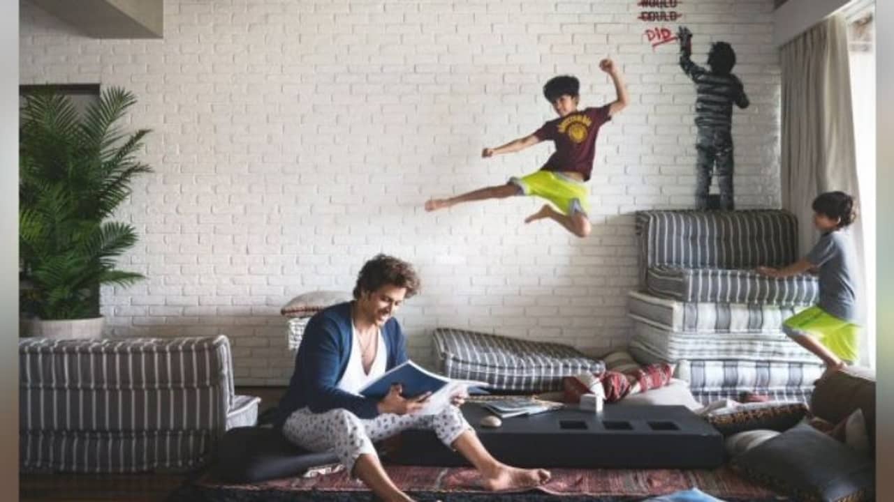 দুই ছেলের জন্য এমন ঘরই বেছে নিয়েছেন বাবা হৃতিক। রয়েছে পৃথিবীর মানচিত্র। ঘুম থেকে উঠেই যার সঙ্গে পরিচয় হয় দুই ছেলের।