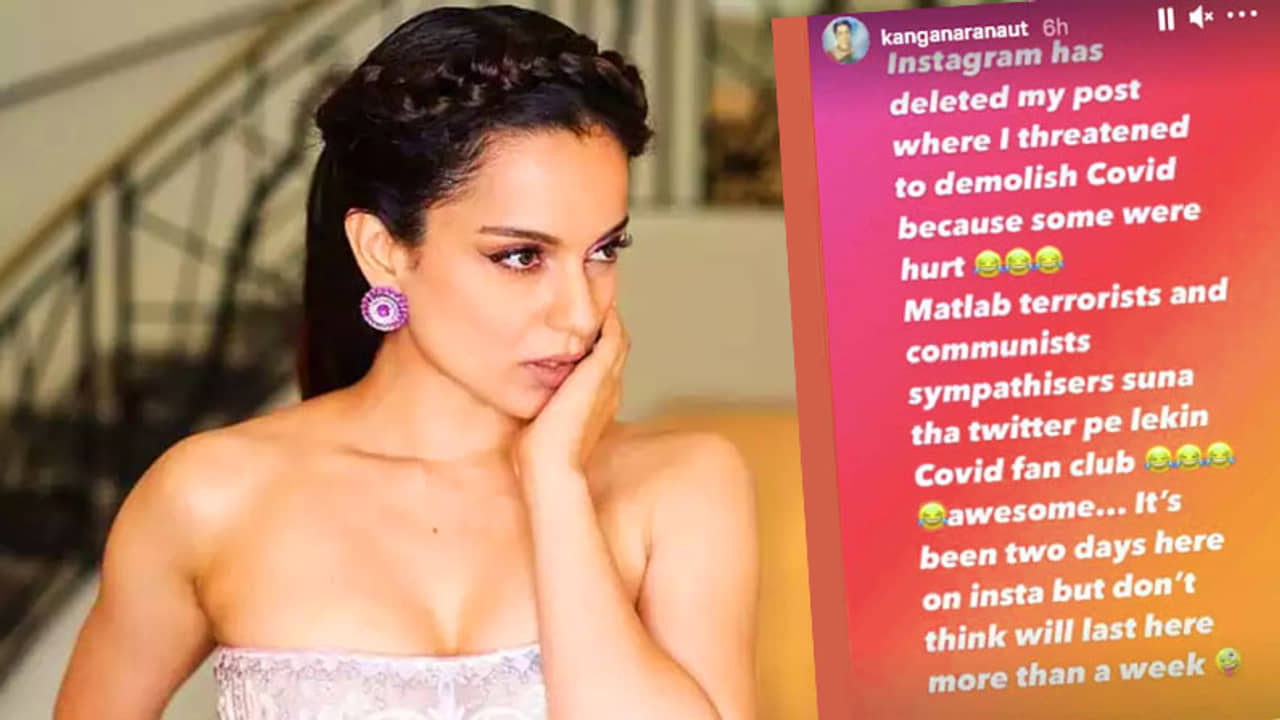 পোস্টটি করার পরই কোভিডকে একটি ‘ছোট টাইম ফ্লু’ বলে তাঁর মন্তব্যটি নেটিজেনদের প্রতিক্রিয়া মুখে পড়ে কারণ দেশে প্রায় ৩ লক্ষ মানুষ তাঁদের জীবন হারিয়েছে এবং কঙ্গনার ক্যাপশনটি মানুষের কাছে অত্যন্ত সংবেদনশীল ছিল। এবং এ কারণে, ইনস্টাগ্রাম ভুল তথ্য দেওয়ার কারণে কঙ্গনার পোস্টটি ডিলিট করে দিয়েছে বলে খবর। কিন্তু তারপরেও থামেননি কঙ্গনা। নিজের ইনস্টা স্টোরিতে গোটা ঘটনাটির প্রতিক্রিয়া স্বরূপ লেখেন, ‘ইনস্টাগ্রাম আমার পোস্টটি ডিলিট করেছে কারণ আমি কোভিডকে ধ্বংস করার হুমকি দিই, কিন্তু কিছু মানুষ আহত হয়েছিলেন। আমি শুনেছিলাম টুইটারে সন্ত্রাসবাদী এবং কমিউনিস্ট সহানুভূতিশীল মানুষ আছে জানতাম কিন্তু এ তো দুর্দান্ত কোভিড ফ্যান ক্লাব… ইন্সটাতে দু’দিন হল আমি এসেছি কিন্তু মনে হয় না এক সপ্তাহের বেশি এখানে থাকতে পারব।’