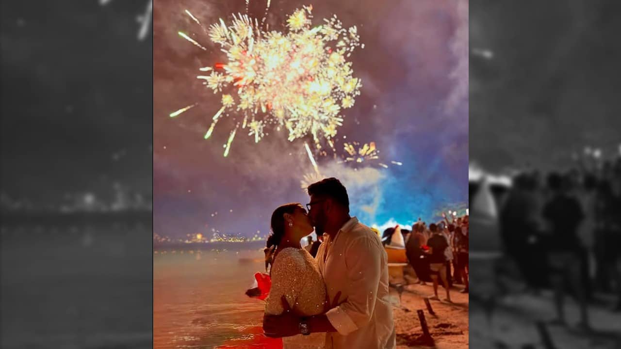 একে অপরের ঠোঁটে ডুব দিলেন তাঁরা। রাজ-শুভশ্রীর আদুরে মুহূর্ত ফ্রেমবন্দি করতে ভুললেন না উপস্থিত যুগলের বন্ধুরা। সঙ্গে সঙ্গেই গোটা আকাশ ভরে গেল আলোয়।