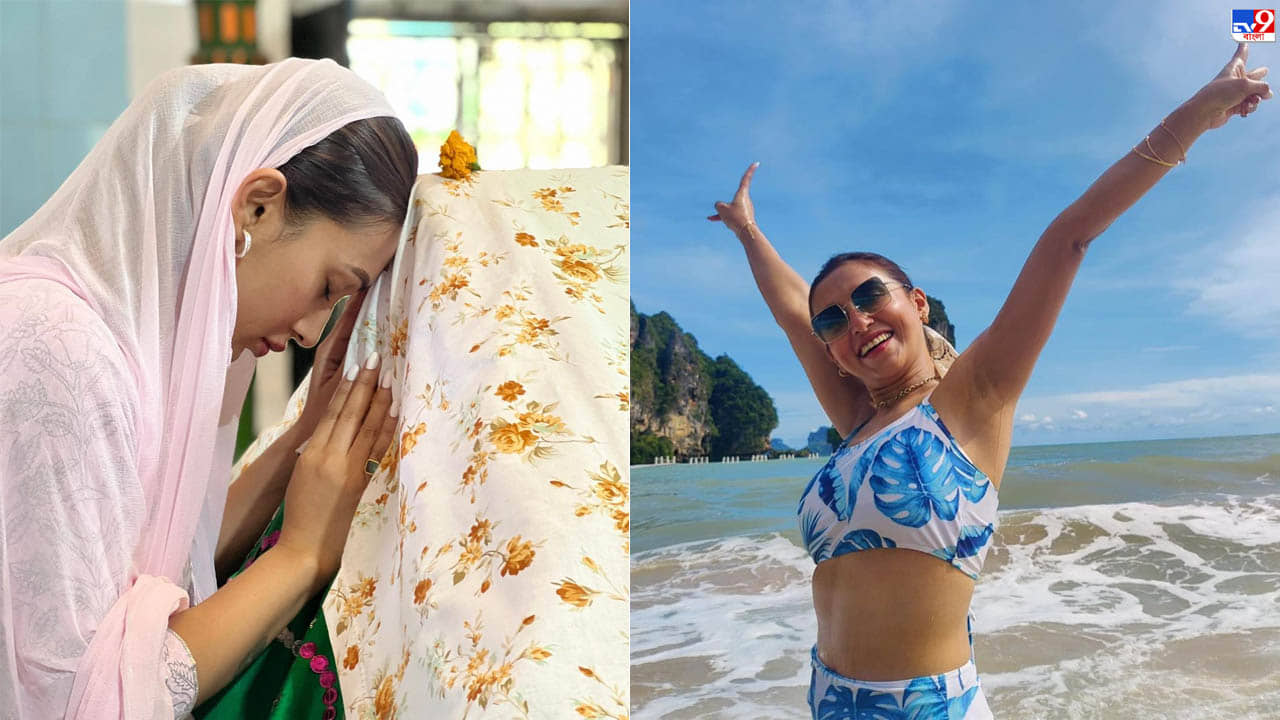 কয়েকদিন আগেই বোনঝিকে নিয়ে গিয়েছিলেন হুজুর সাহেবের দরগায়। এবার সেখান থেকে পাড়ি সমুদ্রে। তবে সেটা কোথায় তা অবশ্য জানাননি মিমি। আর সঙ্গে কো, তাও নয়!