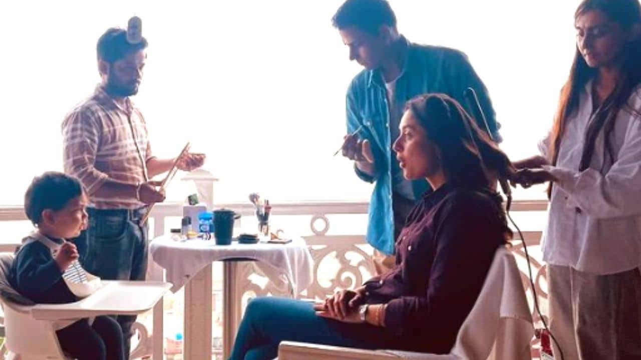 কুয়াশা ঘেরা পাহাড়ি শহর। কাঞ্চনজঙ্ঘা দেখা দিয়েও যেন দিচ্ছে না। মুখোমুখি বসে রয়েছেন মা-ছেলের। ছেলের বয়স পার হয়েছে এক। এই প্রথম মায়ের সঙ্গে পাহাড় আসা তার। মা শুটিং করছে, আর ব্রেকের মাঝে খোঁজ নিচ্ছে ছেলের। ছেলের মুখেও কোনও বিরক্তি নেই। মায়ের চুল বাঁধা একদৃষ্টি তাকিয়ে দেখছে সে। কথা হচ্ছে মা করিনা কাপুর ও ছেলে জাহাঙ্গীরের।