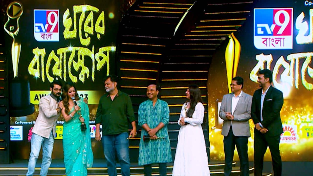 হাজার তারার মেলা, হাজার মানুষের ভিড়। TV9 Banglar প্রথম প্রয়াসে হাজির ছিলেন ইন্ডাস্ট্রির প্রায় সকলেই। ইন্ডাস্ট্রিতে সাফল্যের সঙ্গে বেশ কিছু সময় কাটিয়ে ফেলেছেন সৃজিত মুখোপাধ্যায়। তাঁর ঝুলিতে সাফল্য কম নয়। তাঁর কৃতিত্বের জন্য বিশেষ সম্মাননা (Special Recognition Award) দেওয়া হল তাঁকেও। পেলেন ফেলুদাকে ওটিটিতে প্রথম বার নিয়ে আসার জন্য বিশেষ পুরস্কার। ইংরেজিতে বলতে শুরু করেছিলেন সৃজিত মুখোপাধ্যায়। থামিয়ে দিয়ে অর্পিতা বললেন বাংলায় বলতে। রসিকতা করে সৃজিতের বক্তব্য, “পরম আমায় একলাইনে বলতে বলেছে।” পুরস্কার পেলেন রাইমা সেনও। ওয়েবসিরিজ ‘রক্তকরবী’র জন্য দেওয়া হল তাঁকে পুরস্কার। ইংরেজিতে বলছিলেন তিনি। তাঁকেও পরমের খুনসুটি ‘বাবাহ’। হেসে উঠলেন প্রসেনজিৎ চট্টোপাধ্যায়ও। ‘