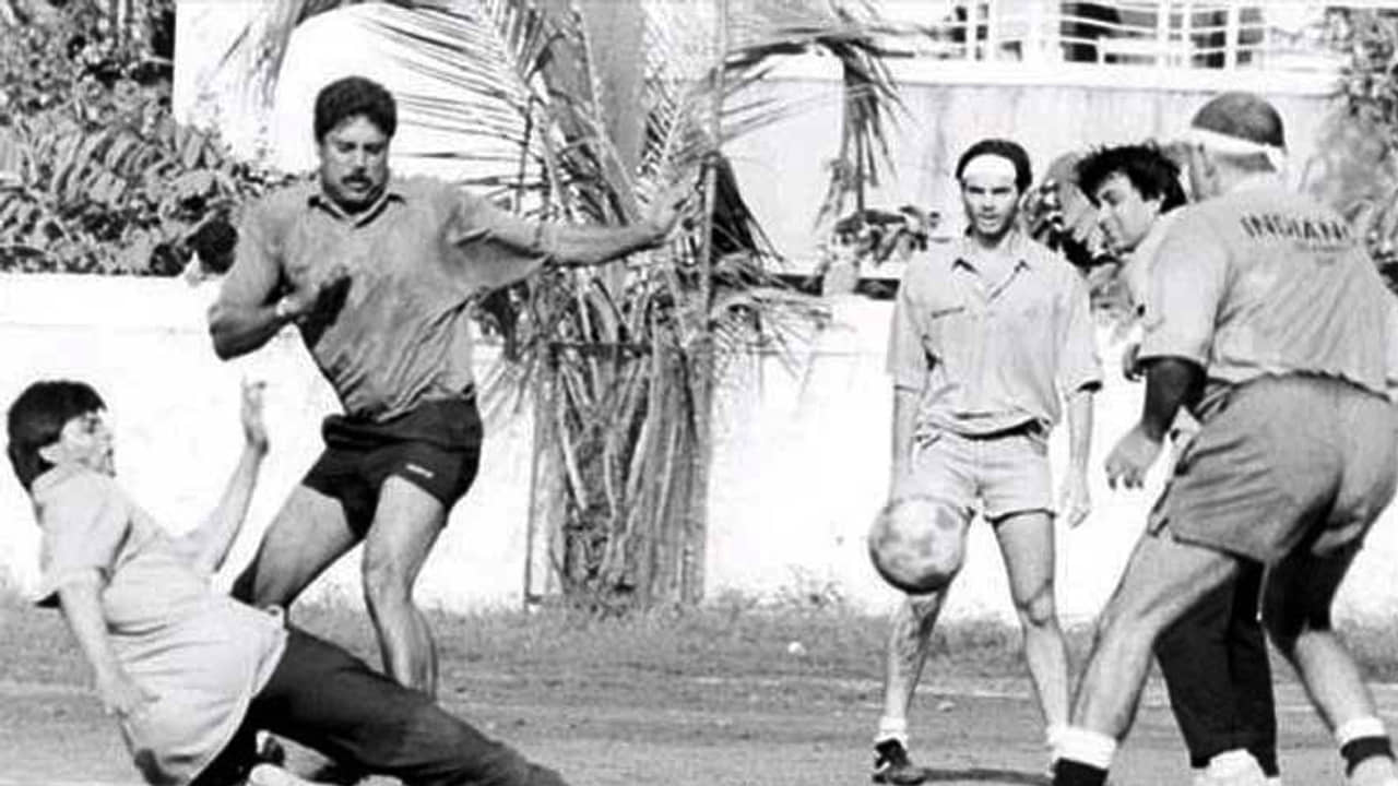 সোশ্যাল মিডিয়ায় এ ছবি পোস্ট হতেই ভাইরাল। নয়ের দশকের ছবি দেখে আপনি নস্ট্যালজিক হতে বাধ্য। সাদা-কালো ছবিতে শাহরুখ পড়ে গিয়েও করছেন ট্যাকল। আর কপিল দিয়েছেন বলে এক দুর্দান্ত শট। পাশে দেখা যাচ্ছে দীপক তিজোরি এবং আরবাজ খানকেও। যা ধারণা ফ্রেন্ডলি ফুটবল ম্যাচের এক দৃশ্যেরই ছবি।