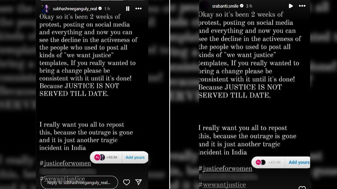 RG Kar: প্রথম দিন থেকেই তিলোত্তমার বিচার চাইছেন শুভশ্রী গঙ্গোপাধ্যায় ও শ্রাবন্তী চট্টোপাধ্যায়। পথে নেমে প্রতিবাদ করছেন। দিয়েছেন স্লোগানও। সেই তাঁরাই এবার যে ভুল করলেন তা দেখে ছিঃ ছিঃ করছেন সাধারণ। আঙুল তুলে তাঁরা বলছেন, 'এটুকু দায়বদ্ধতা নেই আপনাদের?"