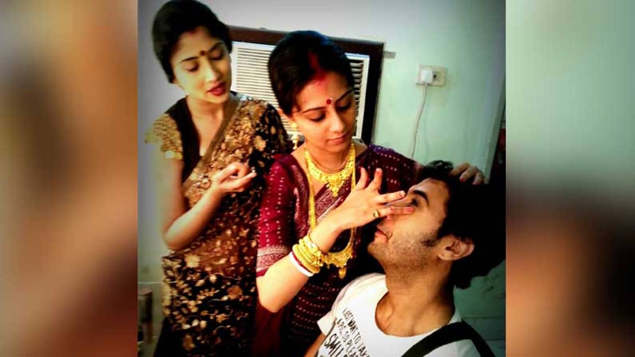মেকআপ করতে বসেছেন অভিনেতা সম্রাট মুখোপাধ্যায়। আর তাঁর মেকআপ করিয়ে দিচ্ছেন অভিনেত্রী মানালি মনীষা দে। মানালিকে সাহায্য করছেন দেবলীনা দত্ত। প্রায় আট বছর আগে এই ছবি তোলা হয়েছিল ধারাবাহিক ‘সখী’র সেটে। ফেসবুক ফিরিয়ে দিল সেই স্মৃতি। অনেক পুরনো কথা মনে পড়ে গেল অভিনেতার।
