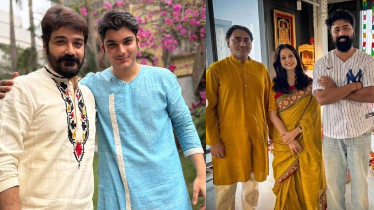 ১২ বছর পর ছেলে তৃষাণজিতের সঙ্গে সরস্বতী পুজো কাটালেন প্রসেনজিৎ চট্টোপাধ্যায়ে। বাবা-ছেলে মিলে সেজে উঠলেন বাহারি পাঞ্জাবিতে। Photo: Instagram
