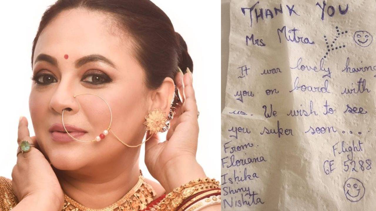 মুম্বইয়ে যাওয়ার সময় সেই বেসরকারি বিমানে উঠেছিলেন শ্রীলেখা। সেই বিমানের সেবিকারা ছিলেন ফ্লোরিয়ানা, ইশিকা, সাইনি এবং নিশিতা। শ্রীলেখার সান্নিধ্য পেয়ে তাঁরা এতটাই আপ্লুত যে, বিমান মুম্বইয়ের মাটি ছোঁয়ার ঠিক আগে অভিনেত্রীর কাছে একটি বার্তা পৌঁছেছেন তাঁরা। শ্রীলেখাকে উদ্দেশ্য করে একটি টিস্যু পেপারে লিখেছেন কিছু কথা। সাইনি, ফ্লোরিয়ানারা লিখেছেন, “আমাদের বিমানে আপনাকে আমরা পেয়ে ভীষণই আনন্দিত। আবার যেন শীঘ্রই আপনার দেখা পাই।” চিঠির শেষে তাঁদের নাম লিখে ফ্লাইটের নম্বরও লিখেছেন চার বিমান সেবিকা।