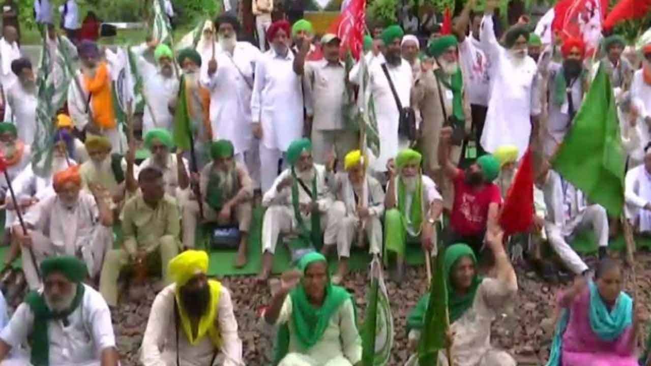 Haryana | Protestors block railway tracks at Bahadurgarh in protest against Lakhimpur Kheri incident