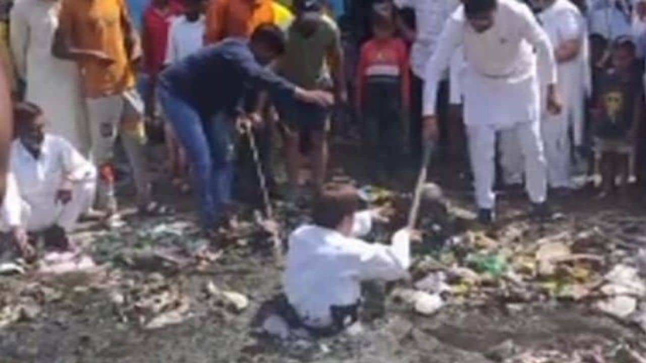 স্থানীয় বাসিন্দাদের করা এই ভিডিয়ো ইতিমধ্যেই ভাইরাল হয়েছে। ওই ভিডিয়োয় দেখা গিয়েছে, সাদা কুর্তা পরিহিত ওই কাউন্সিলর বুক অবধি জমা কাদাজলে নেমে পড়েছেন। তাঁর হাত ধরে রয়েছেন দুজন, কাউন্সিলর নিজেই জমা ময়লা, কাদা পরিষ্কার করছেন। কাদা মেখে তিনি যখন উঠে আসেন, সমর্থকরা তাঁকে দুধ দিয়ে স্নান করান, ঠিক যেভাবে নায়ক সিনেমায় অনিল কপূরকে দুধ দিয়ে স্নান করানো হয়েছিল।