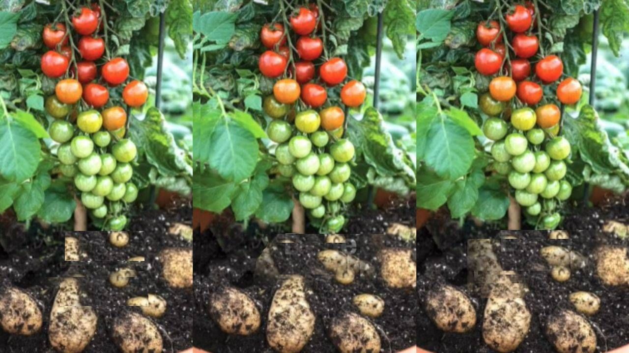 Grafting of Potato and Tomato: সোশ্যাল মিডিয়ায় একটি ভিডিয়ো ভাইরাল হয়েছে। তাতে দেখা যাচ্ছে গাছের ডালে ঝুলছে লাল লাল টম্যাটো। ডালে রসালো টম্যাটো, আর মাটির নীচ থেকে উঁকি মারছে বড় বড় আলু। একই গাছে উপরে টম্যাটো, নীচে আলু। ভিডিয়োটি ইনস্টাগ্রামে শেয়ার করেছেন 'এগ্রোটিল' নামে এক ইনস্টাগ্রাম ব্যবহারকারী।