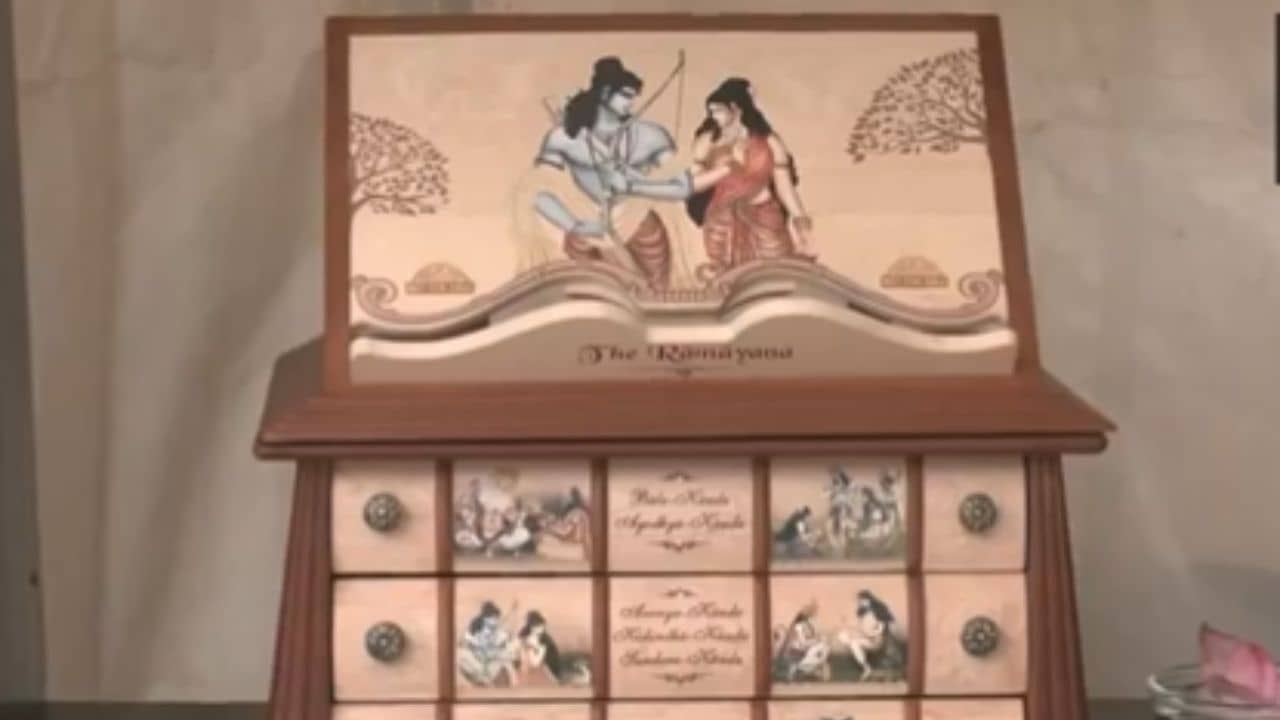 #WATCH | Uttar Pradesh: Ramayana worth Rs 1,65,000 displayed in Ayodhya. The weight of the Ramayana is 45 kg and it comes in three boxes. (19.01) pic.twitter.com/WbEsOCpQcZ