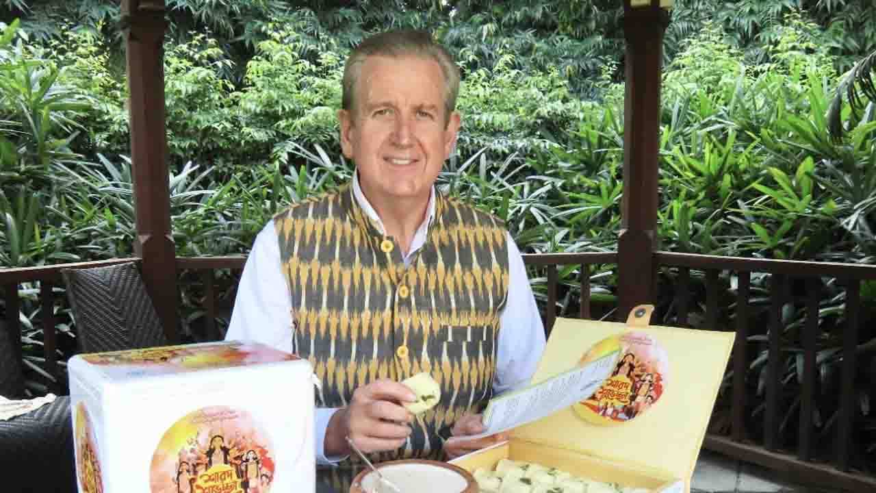 মঙ্গলবারই মিষ্টি দই ও সন্দেশের বাক্স নিয়ে একগুচ্ছ ছবি টুইট করেন ব্যারি ওফারেল। ছবিতে দেখা যাচ্ছে টেবিলে সাজানো সন্দেশের বাক্স ও মিষ্টি দই এর ভাঁড়। এক চামচ দই মুখে তুলতেও দেখা যাচ্ছে তাঁকে। তাঁর পরনে রয়েছে ভারতীয় পোশাক।