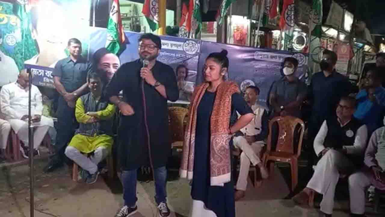 শুক্রবার সকালেই ত্রিপুরায় পৌঁছেছেন বাবুল। এ দিন সন্ধেয় তাঁর একটি জনসভা ছিল আগরতলায়। সায়নী যখন বক্তব্য রাখছেন, তখনই পাশ দিয়ে যাচ্ছিল বিজেপির গাড়ি। তাতেই বাজছিল বাবুলের কন্ঠে সেই গান। গান শুনে ক্ষুব্ধ হন সায়নী। উঠে এসে মাইক্রোফোন টেনে নেন বাবুল। তিনি বলেন, ‘ভেবে দেখুন, নেতারা কতটা অহঙ্কারি হলে, নীচু তলার নেতাদের সঙ্গে কতটা দুর্ব্যবহার করলে এই গানটা যে ছেলেটা লিখেছিল, সেও আজ দল বদলে দিদির হাত ধরে তৃণমূলে চলে আসে।’ তিনি আরও বলেন, ‘আমি ওই গান শুনছি না। আমি যা করি সেটা মন থেকে করি, তৃণমূলের জন্য আরও ভালো গান বানাব।’ বাবুলের দাবি, এই গান বাজালে আসলে এটাই প্রমাণিত হচ্ছে যে, দলের অহঙ্কারের জন্যই ছেড়ে চলে এসেছেন তিনি।