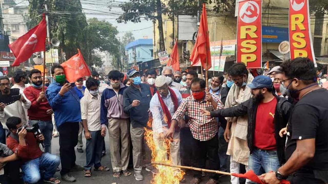 West Bengal: Left parties raise slogans against farm laws & burn effigies in Jadavpur area of Kolkata
