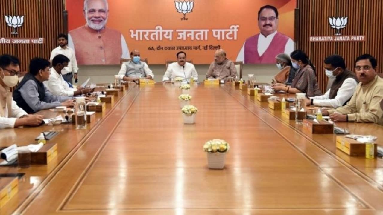 শনিবার দিল্লিতে বিজেপির সদর দফতরে বৈঠকে বসেন কেন্দ্রীয় মন্ত্রীত্বরা। বৈঠকে উপস্থিত ছিলেন বিজেপির সর্বভারতীয় সভাপতি জগত্প্রকাশ নাড্ডা, কেন্দ্রীয় স্বরাষ্ট্রমন্ত্রী অমিত শাহ, প্রতিরক্ষামন্ত্রী রাজনাথ সিং, অর্থমন্ত্রী নির্মলা সীতারামন, কৃষিমন্ত্রী নরেন্দ্র সিং তোমার, স্মৃতি ইরানি ও কিরণ রিজ্জু।