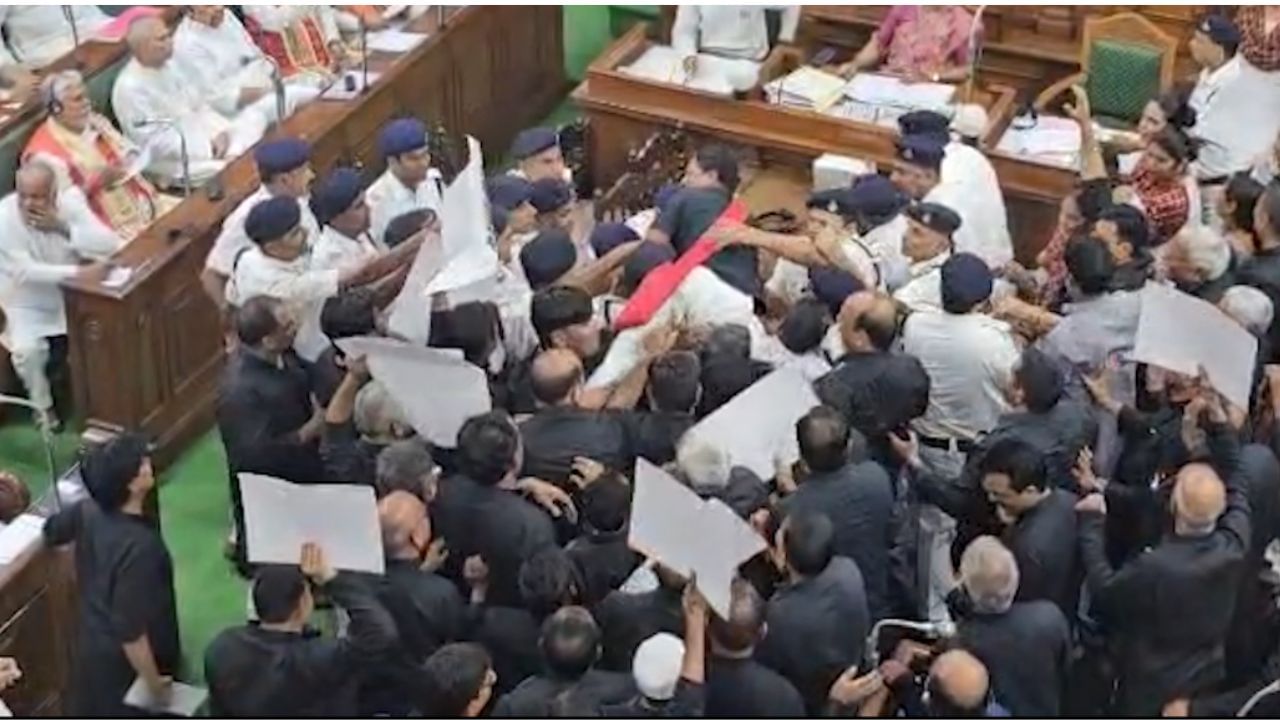 Chaos in assembly: বিধানসভায় মার্শালের কাঁধে উঠে পড়লেন বিধায়ক, ভোটের আগে ধুন্ধুমার কাণ্ড