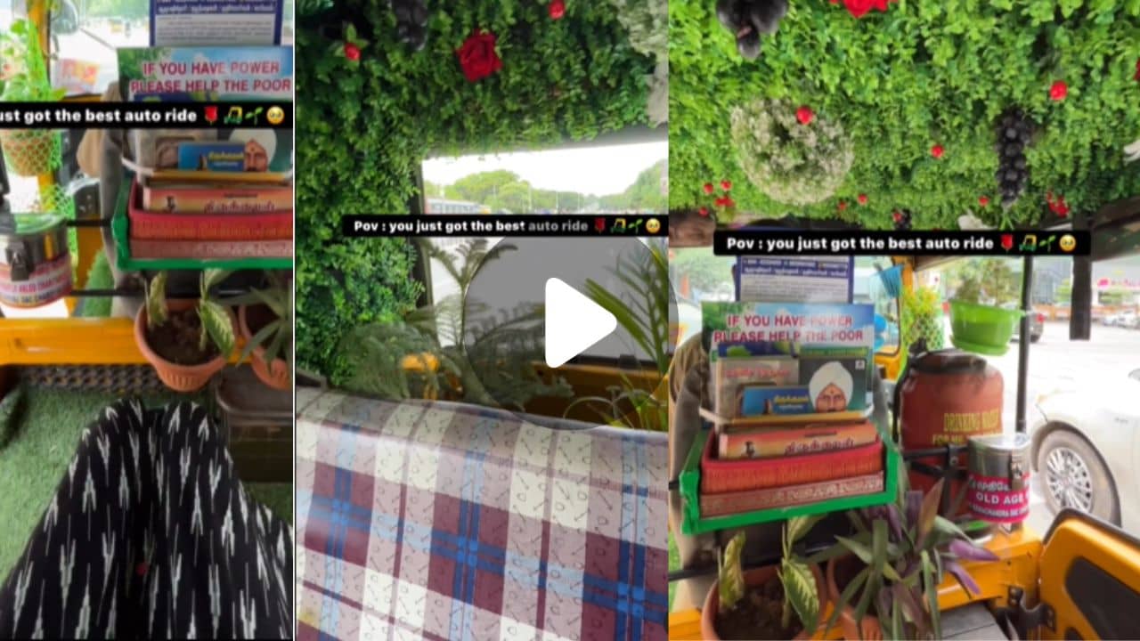 সোশ্যাল মিডিয়া মারফৎ জানা গিয়েছে অটোটিকে সাজিয়ে তুলেছে চেন্নাইয়ের কোনও এক চালক। ভিডিয়োয় দেখা যাচ্ছে অটোর ছাদে রাখা প্রচুর গাছ। খুব সুন্দরভাবে সাজানো হয়েছে। বিভিন্ন ধরনের বাহারি গাছ ব্যবহার করা হয়েছে ছাদটিকে সাজিয়ে তোলার জন্য। ছাদের উপরের দিকে তাকালে শুধু সবুজ আর সবুজ দেখা যাবে। অটোর ভিতরে প্রবেশ করলে আপনি বুঝতেই পারবেন না, বাগানে এসেছেন নাকি অটোতে বসে রয়েছেন। শুধু গাছ নয়, বিভিন্ন ধরনের অনুপ্রেরণা জোগায় সেইরকম বই রাখা রয়েছে সেখানে। এছাড়াও সাজানোর জন্য ব্য়বহার করা হয়েছে বিভিন্ন ধরনের ঘর সাজানোর জিনিস। এক কথায় চেন্নাই গেলে এই অটো একবার চড়েই দেখতে পারেন।