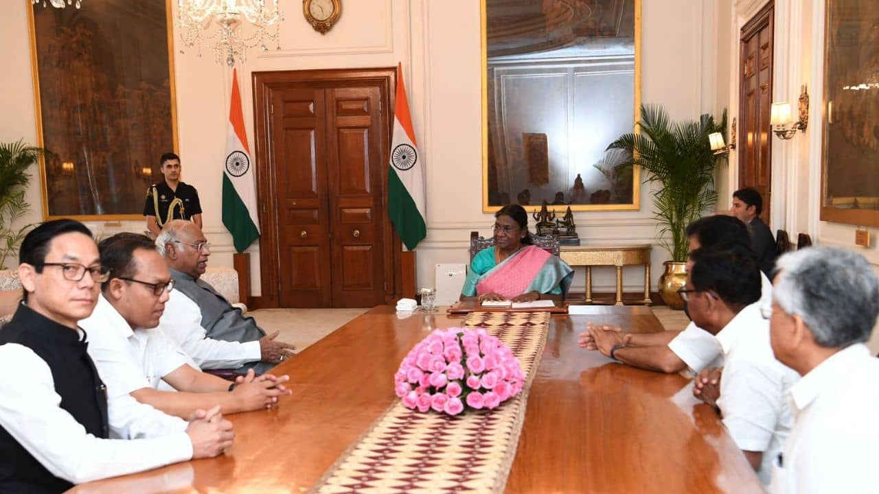 এদিন সকালে মল্লিকার্জুন খাড়্গের নেতৃত্বে কে.সি বেণুগোপাল ও মুকুল ওয়াসনিক সহ মণিপুর কংগ্রেসের প্রতিনিধিরা রাইসিনা হিলসে যান এবং রাষ্ট্রপতি দ্রৌপদী মুর্মুর সঙ্গে সাক্ষাৎ করেন। মণিপুর কংগ্রেসের প্রতিনিধিদের মধ্যে ভক্তচরণ দাস, ওখরাম ববি সিং, মেঘাচন্দ্র সিং সহ ৫ সদস্য ছিলেন। তাঁদের সঙ্গে একপ্রস্থ বৈঠকও করেন রাষ্ট্রপতি দ্রৌপদী মুর্মু। মণিপুর কংগ্রেসের প্রতিনিধিরা রাজ্যের বর্তমান পরিস্থিতির কথা রাষ্ট্রপতির কাছে তুলে ধরেন। কীভাবে সাধারণ মানুষের উপর হামলা চালানো হচ্ছে, ঘর-বাড়ি পুড়িয়ে দেওয়া হচ্ছে, তা তুলে ধরেন তাঁরা। কংগ্রেস নেতৃত্বের দাবি, সরকার চাইলে দ্রুত অশান্তির নিরসন হবে। মণিপুরের শান্তি ও সম্প্রীতি ফিরিয়ে আনতে রাষ্ট্রপতিকে দ্রুত ব্যবস্থা গ্রহণেরও আর্জি জানান তাঁরা। রাষ্ট্রপতিও তাঁদের কথা মনোযোগ সহকারের শোনেন। তারপর মণিপুরের শান্তি ফিরিয়ে আনতে দলীয় সভাপতি মল্লিকার্জুন খাড়্গের নেতৃত্বে ১২ দফা দাবি সম্বলিত একটি স্মারকলিপি রাষ্ট্রপতির কাছে পেশ করেন কংগ্রেস প্রতিনিধিরা।