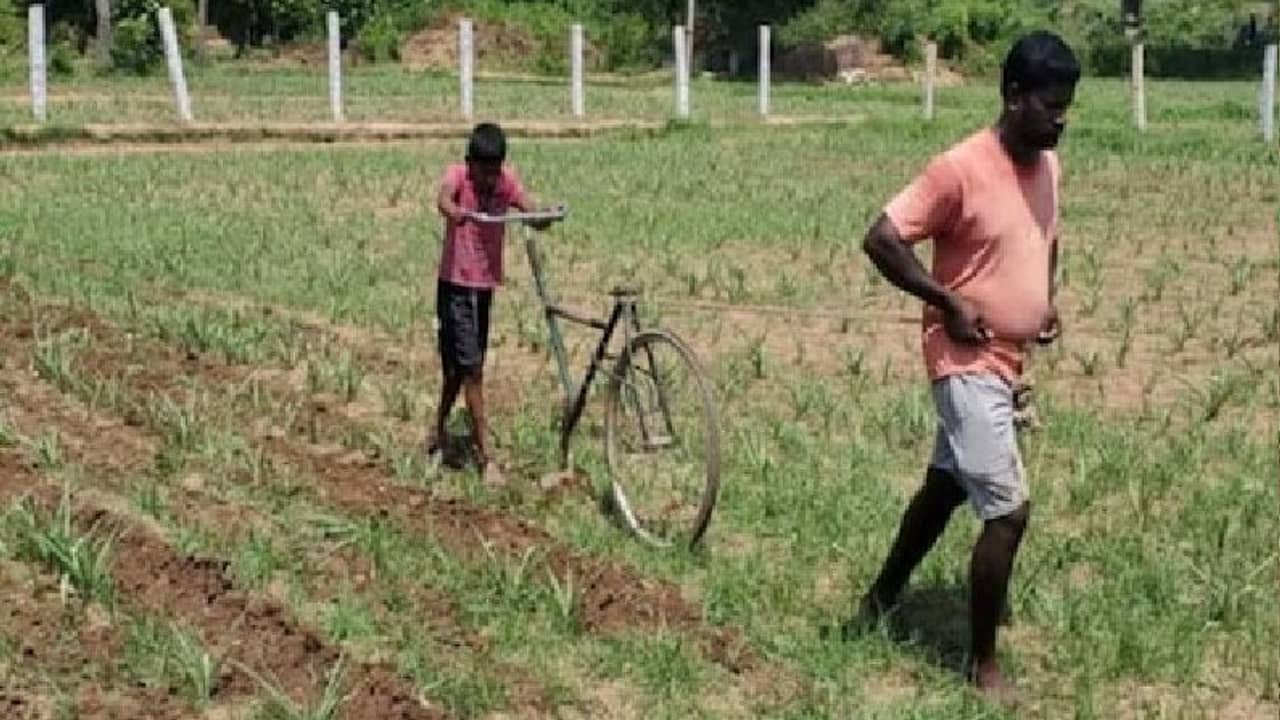 তামিলনাড়ু: শেষমেশ সাইকেল (Cycle) চাষের কাজের সহায়ক হয়ে উঠল। আজব ঘটনায় সাক্ষী থাকল তামিলনাড়ু (Tamil Nadu)। লকডাউনের কারণে মানুষের জীবন কতটা দুর্বিষহ হয়ে উঠেছে তা দেশবাসীর কাছে ধরা দিল। পেটের দায়ে সাইকেলকেই বানানো হল লাঙ্গল। সরকার থেকে ছেলে পেয়েছিল একটি সাইকেল। সেই সাইকেল নিয়ে জমিতে চাষ করতে নামল বাবা।