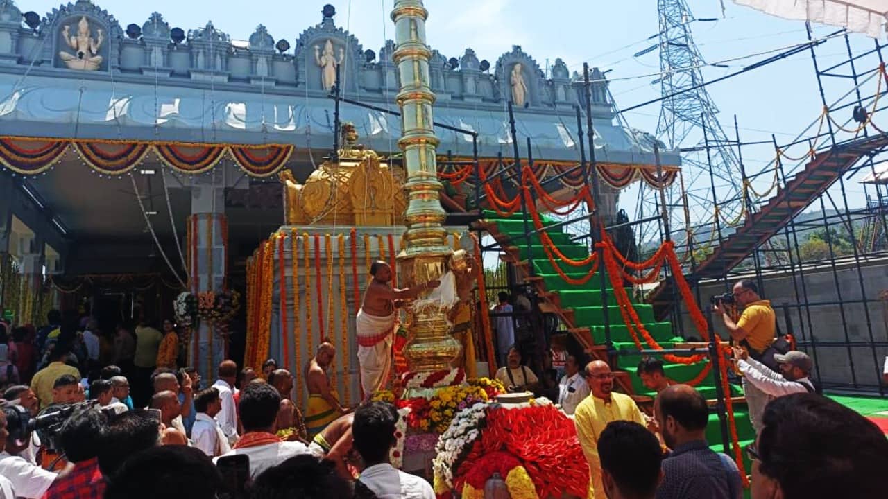 শ্রীনগর: বৃহস্পতিবার (৮ জুন), তিরুমালা তিরুপতি দেবস্থানমের পৃষ্ঠপোষকতায় জম্মুর মাজিন গ্রামে প্রাণ প্রতীষ্ঠা করা হল শ্রী ভেঙ্কটেশ্বর স্বামী মন্দিরের। এই উপলক্ষ্যে অনুষ্ঠিত ‘মহাসম্প্রোক্ষণ’ কর্মসূচিতে দেবমূর্তির অভিষেক অনুষ্ঠানে অংশ নেন কেন্দ্রীয় সংস্কৃতি, পর্যটন ও উত্তর-পূর্ব রাজ্যগুলির উন্নয়ন মন্ত্রী জি কিষাণ রেড্ডি। শিবালিক অরণ্যের মধ্যে ৬২ একর জমিতে প্রাঙ্গনে এই মন্দির নির্মাণ করা হয়েছে। ৩ জুন এই মন্দিরের উদ্বোধন করা হয়েছিল। এরপর, বৈদিক পণ্ডিতদের মন্ত্রোচ্চারণের মধ্যে ছয় দিন ধরে ব্যাপক উৎসাহ-উদ্দীপনার মধ্য দিয়ে এই অনুষ্ঠান চলেছে। বৃহস্পতিবার এই অনুষ্ঠানের শেষ দিন মন্দিরের ধ্বজা উত্তোলন ও ‘সর্বদর্শন’ অনুষ্ঠানে যোগ দেন কেন্দ্রীয় মন্ত্রী।