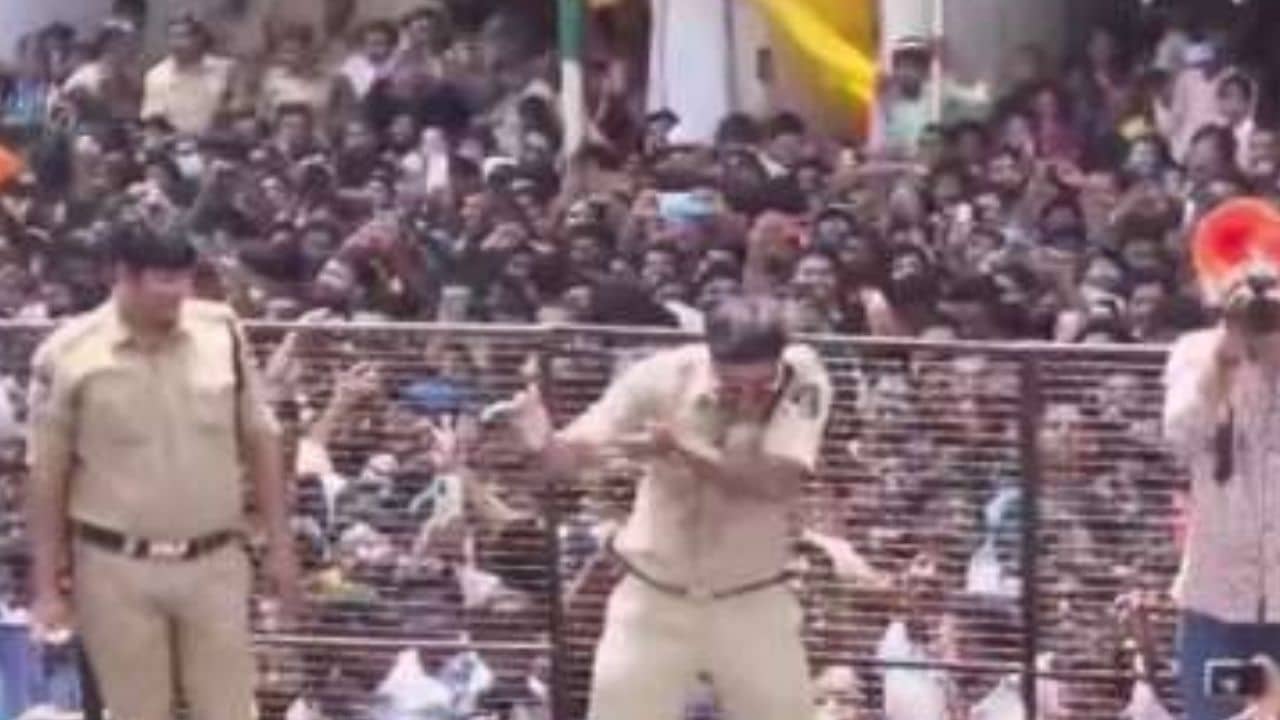 ভাইরাল ভিডিয়োটিতে দেখা যাচ্ছে, হায়দরাবাদের এনটিআর মার্গের খৈরাতাবাদ এলাকায় এবছর ৬৩ ফুট দীর্ঘ গনেশের বিসর্জনে এক শোভাযাত্রা বেরোয়। সেই শোভাযাত্রায় গণ্ডগোল এড়াতে কয়েকজন পুলিশকর্মী মোতায়েন করা হয়েছিল। তাঁদের মধ্যেই এক পুলিশকর্মী উল্লসিত জনতার সঙ্গে নাচতে শুরু করেন। উর্দি পরেই জনপ্রিয় তামিল গানের সঙ্গে কোমর দুলিয়ে নাচেন তিনি। পুলিশকর্মীর সেই নাচ দেখে আরও উল্লসিত হয়ে পড়েন সেখানে উপস্থিত জনতা।