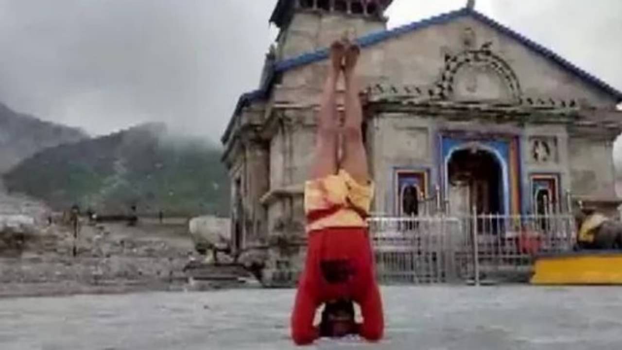 Acharya Santosh Trivedi protests outside Kedarnath Shrine in 'Shirshasana' against formation of Uttarkhand Char Dham Devasthanam Management Board, saying, "I will protest like this for 7 days. If the State govt didn't dissolve this board, there will be a major protest." pic.twitter.com/pzxqmFWSHt