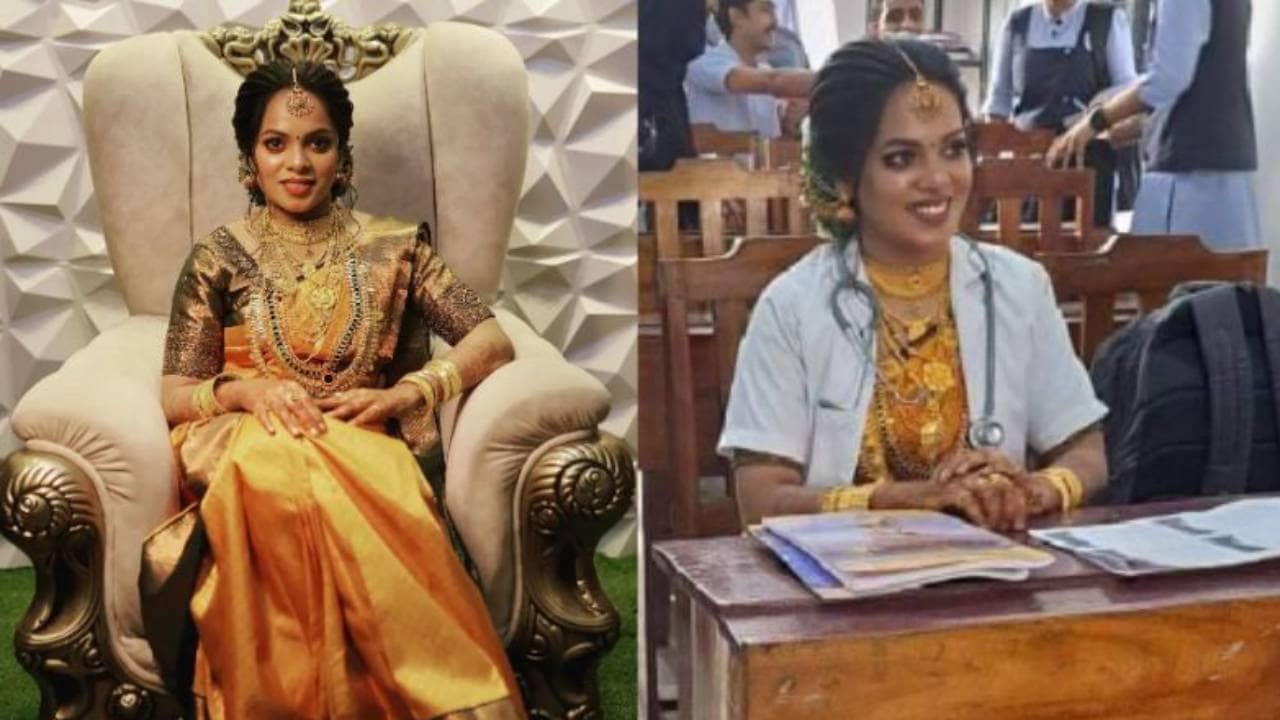 কেরলের বেথানি নবজীবন কলেজ অব পিজিওথেরাপিতে পড়েন ওই ছাত্রী। তাঁর নাম শ্রীলক্ষ্মী অনিল। ফিজিয়োথেরাপির স্নাতক স্তরের ছাত্রী তিনি। বিয়ের দিনেই বার্ষিক প্র্যাক্টিক্যাল পরীক্ষা ছিল তাঁর। বিয়ের সাজেই পরীক্ষা দিতে আসেন তিনি। বিয়ের জন্য হলুদ শাড়ি পরেছিলেন তিনি। সেই শাড়ির উপর পরেছিলেন সাদা রঙের অ্যাপ্রন। গলায় স্টেথোস্কোপও ঝুলিয়েছিলেন তিনি। এর পাশাপাশি বিয়ের গয়নাও পরেছিলেন।