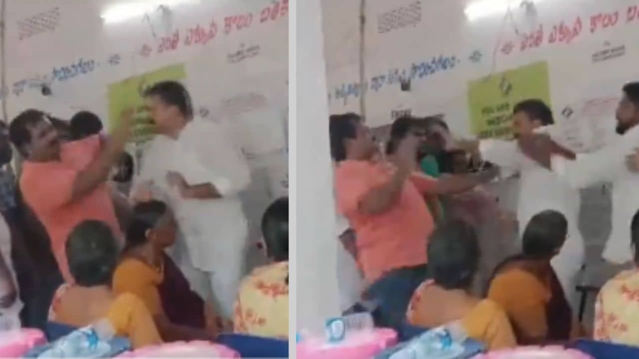 #WATCH | Andhra Pradesh: YSRCP MLA and candidate for state assembly elections, A Sivakumar attacks a voter in Tenali, Guntur. The voter, who was standing in a queue to cast his vote, objected to the MLA’s attempt to jump the line and cast his vote without waiting. The MLA, in… pic.twitter.com/9tDP8wwJO8