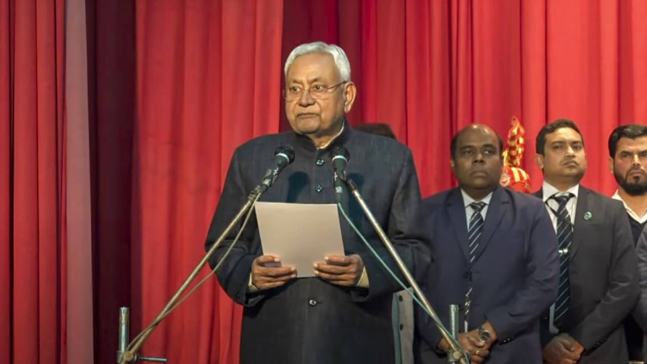 #WATCH | Nitish Kumar takes oath as Bihar CM for the 9th time after he along with his party joined the BJP-led NDA bloc. pic.twitter.com/ePGsqvusM3