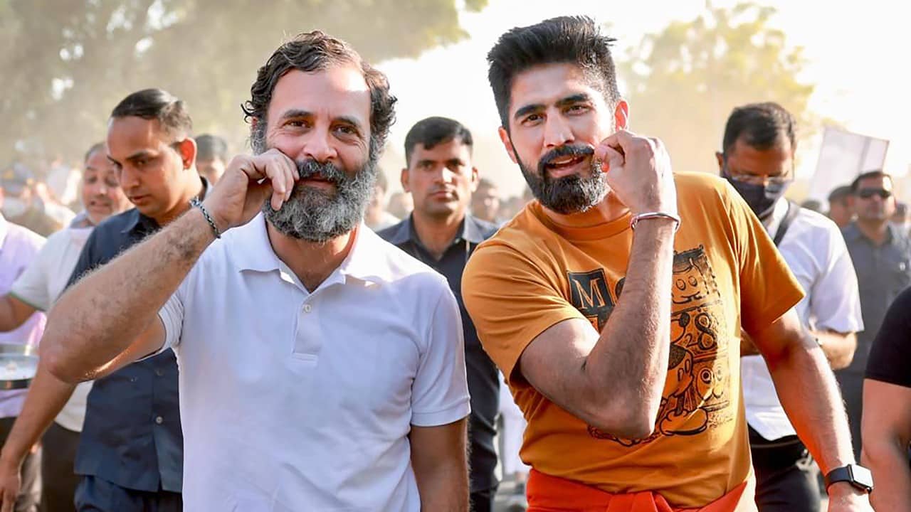 গতকাল মধ্য প্রদেশের খারগোনে ভারত জোড়ো যাত্রায় যোগ দেন কুস্তিগির বিজেন্দর সিং। সেই যাত্রাতেই দেখা গিয়েছে, বিজেন্দর ও রাহুল নিজেদের গোঁফ পাকাচ্ছেন। কংগ্রেসের অফিসিয়াল টুইটার হ্যান্ডেল থেকে সেই ভিডিয়ো শেয়ারও করা হয়েছে। সেই ভিডিয়োতে হাঁটতে হাঁটতে তাঁদের কথা বলতেও দেখা গিয়েছে। সেই ভিডিয়োতে প্রিয়ঙ্কা গান্ধীকেও হাঁটতে দেখা গিয়েছে।