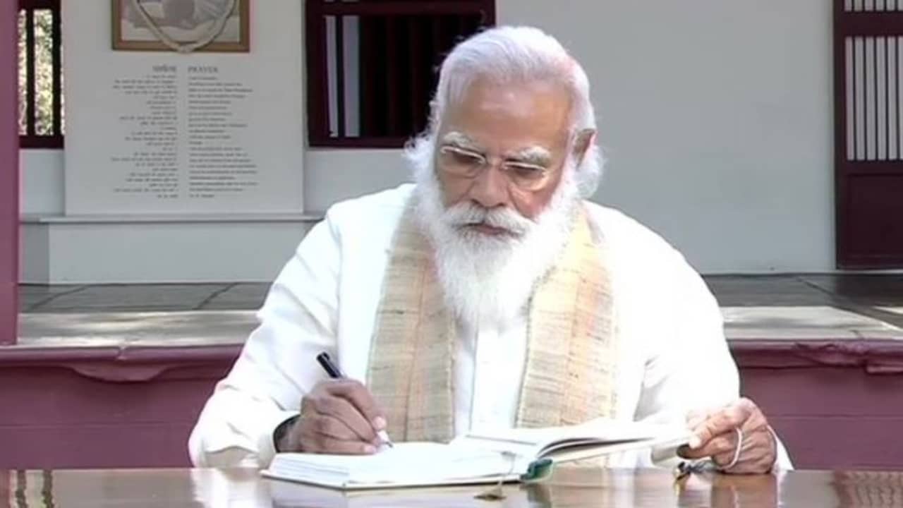 এদিন সকাল সাড়ে ১০টা নাগাদ গুজরাটের সবরমতী আশ্রমে পৌঁছন প্রধানমন্ত্রী। সেখানে তিনি মহাত্মা গান্ধীর মূর্তিতে মাল্যদান করে শ্রদ্ধাজ্ঞাপন করেন এবং প্রথা অনুসারেই ভিজিটর বুকে একটি বিশেষ বার্তাও লিখে আসেন। প্রধানমন্ত্রী ভিজিটর বুকে লেখেন, “এই উৎসব চলাকালীন দেশবাসী ভারতের স্বাধীনতা আন্দোলনের প্রতিটি পদক্ষেপকে ফের একবার স্মরণ করবে এবং আগামিদিনের জন্য নতুন উৎসাহ নিয়ে এগিয়ে যাবে। আমি বিশ্বাস করি, বাপুর আশির্বাদে আমরা সকল ভারতীয়রা অমৃত মহোৎসবের লক্ষ্য পূরণের উদ্দেশ্যে নিজেদের দায়িত্বপূরণ করব।”