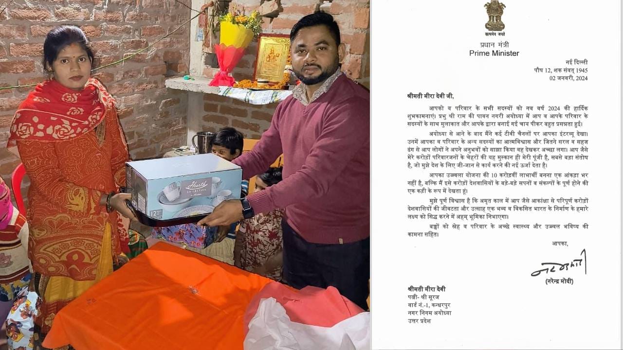 ৩০ ডিসেম্বর মোদী যখন অযোধ্যা সফরে গিয়েছিলেন, তখন মীরার বাড়িতেই চা খেয়েছিলেন তিনি। এর পর ২ ডিসেম্বর মীরাকে চিঠি লিখেছেন মোদী। সেই চিঠিতে মোদী মীরার পরিবারকে নতুন বছরের শুভেচ্ছা জানিয়েছেন। সেই সঙ্গে কাপ-ডিশের সেটের পাশাপাশি রং-তুলিও উপহার পাঠিয়েছেন মীরার সন্তানদের জন্য।
