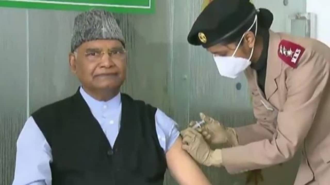 President Ram Nath Kovind, accompanied by his daughter, was administered the COVID-19 vaccine at the Army R&R Hospital, Delhi, today. pic.twitter.com/xf6VQ6pIwS
