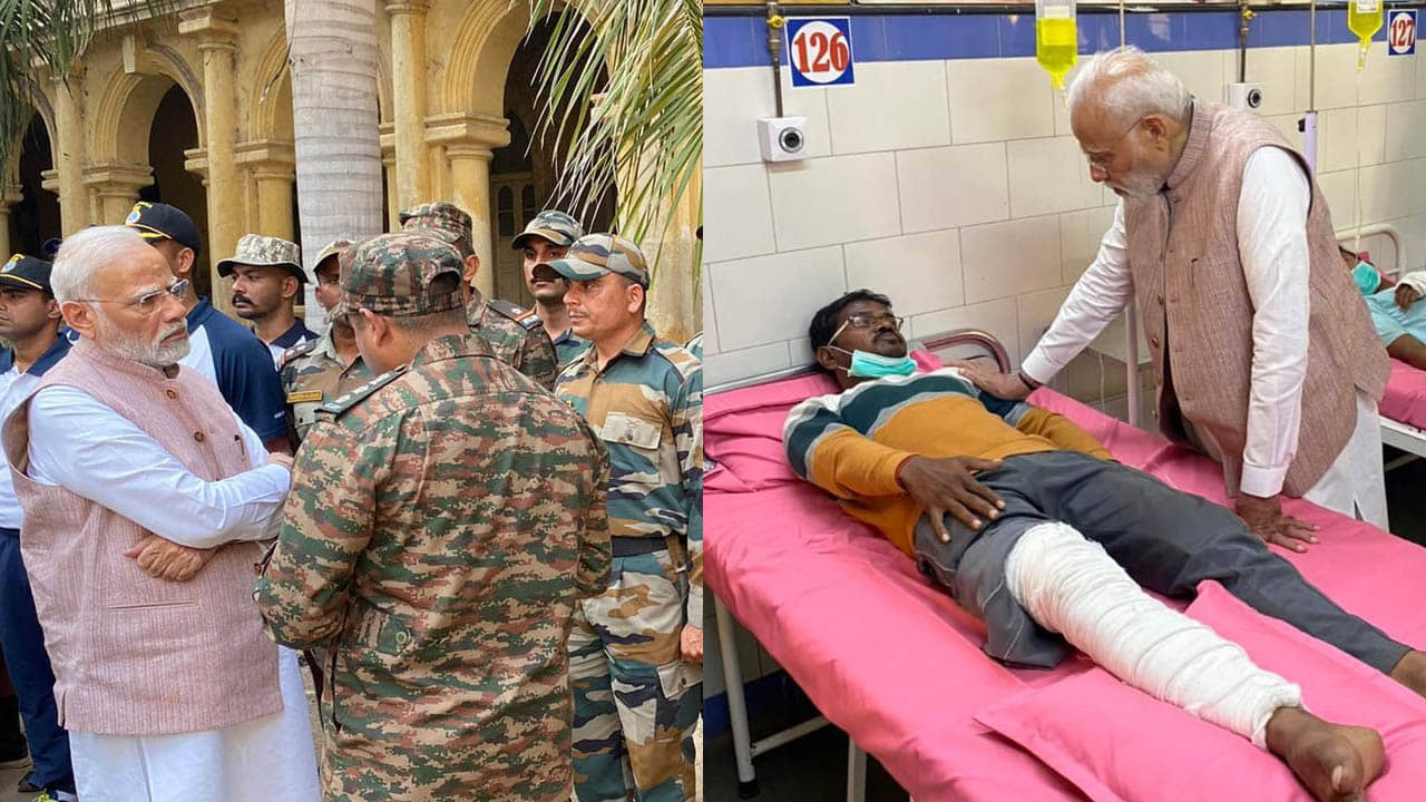 উদ্ধারকাজ খতিয়ে দেখার পাশাপাশি হাসাতালে গিয়ে আহতদের সঙ্গেও দেখা করেন মোদী।
