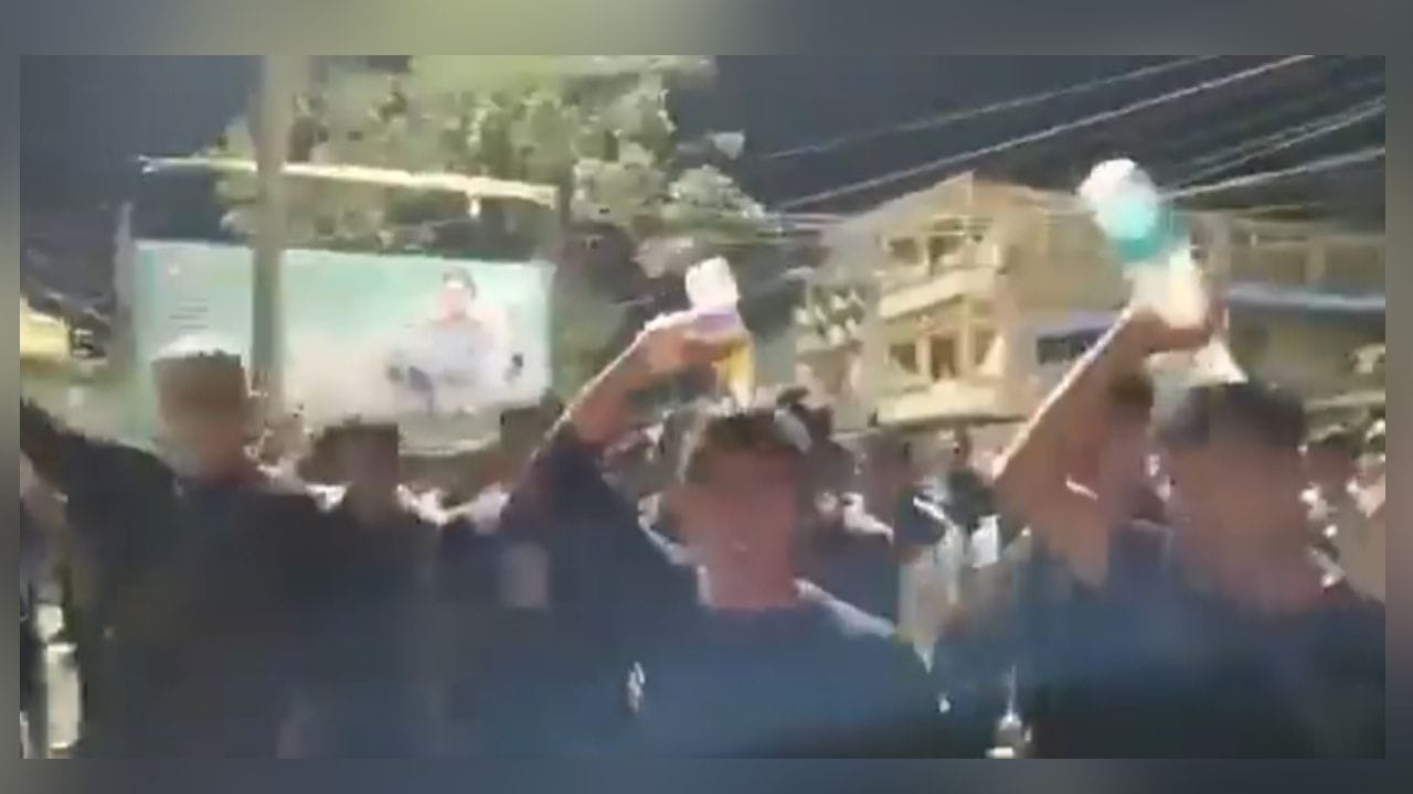 সোশ্যাল মিডিয়ায় ভাইরাল ভিডিয়োয় দেখা গিয়েছে, কয়েকজন যুবক নিজেদের গায়ে পেট্রোল ঢেলে দিচ্ছেন। তাদের বলতে শোনা যায়, “আমরা অস্ত্র-শস্ত্রও ফিরিয়ে দিয়েছি। বন্যার সময়ও যা কিছু করার ছিল, করেছি। এখন আমাদের গ্রেফতার করা হচ্ছে। আমরা নিজেদেরই মেরে ফেলব।”