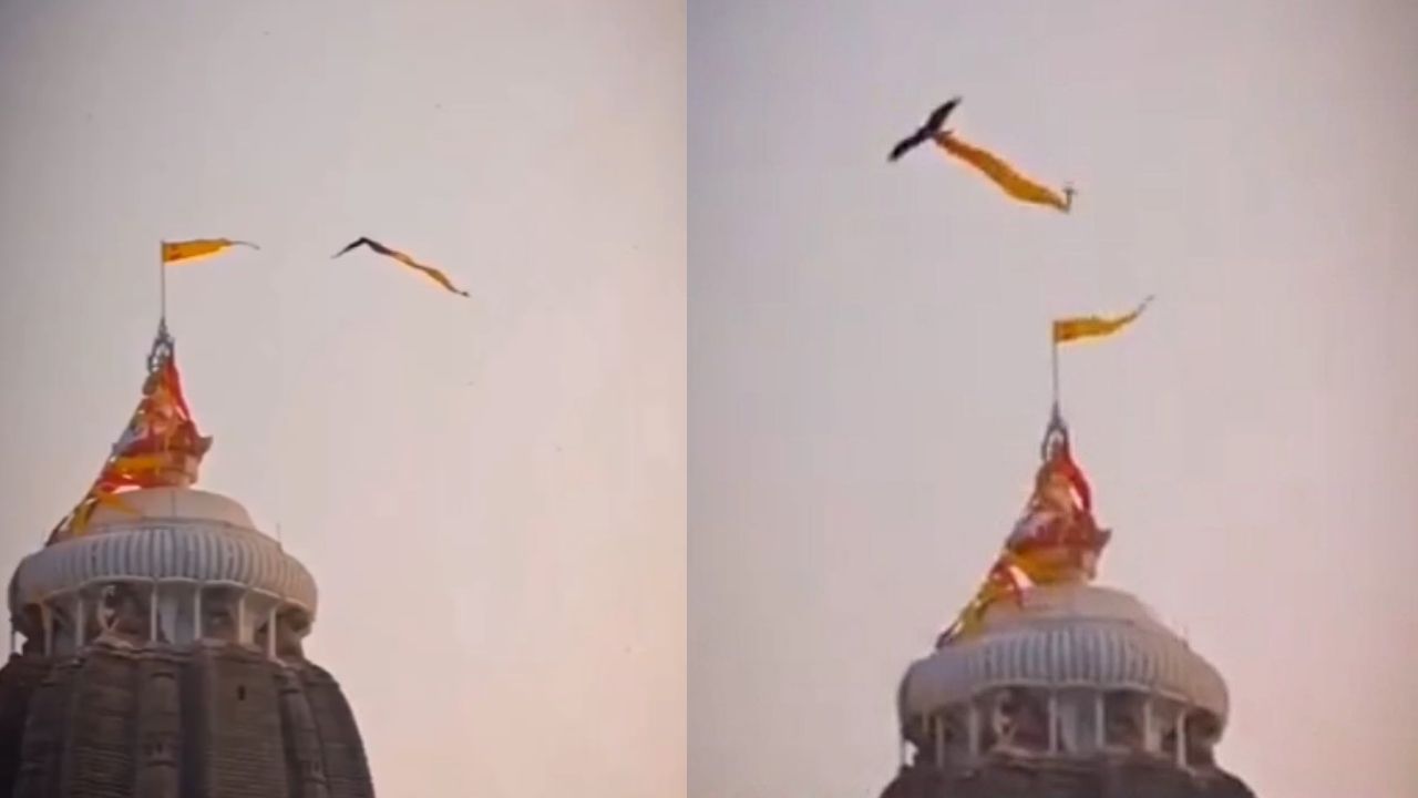 Eagle takes away flag from Jagannath Temple pic.twitter.com/0AzUZb1uDE