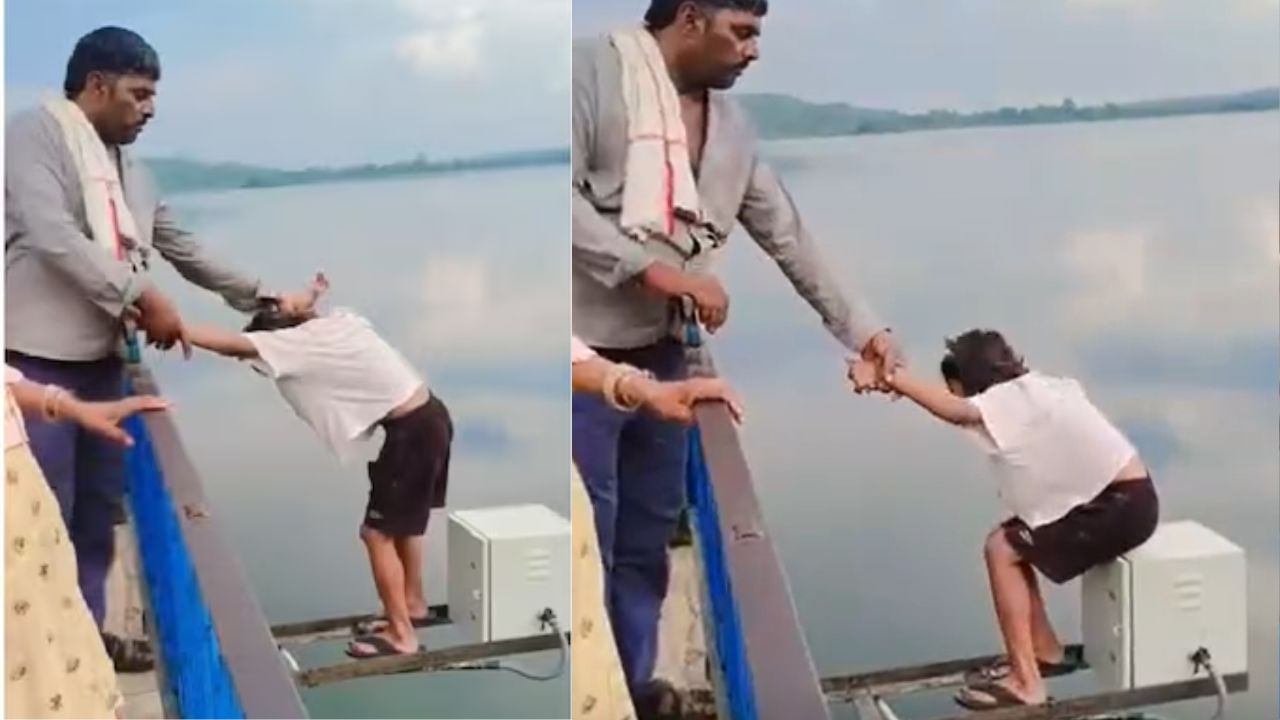 ভিডিয়োতে দেখা যায়, নিচে বয়ে চলেছে জল। আর জলাধারের উপরে একটি লোহার বিমে মেয়েকে বসানোর চেষ্টা করছেন ওই ব্যক্তি। শিশুকন্যাটি ভয়ে প্রথমে বাবার হাত আঁকড়ে ধরে। তা সত্ত্বেও শিশুকন্যাকে সেই বিমের দিকে যেতে বলেন উমা শঙ্কর। ধীরে ধীরে সেখানে বসে ওই শিশুকন্যা। তখন তার বাবা হাত ছেড়ে দেয়। ভিডিয়োতে দেখা যায়, হাসিমুখে স্বামীর পাশে দাঁড়িয়ে রয়েছেন শিশুকন্যার মা। তিনিও স্বামীকে কিছু বলেননি। শিশুকন্যাটি লোহার বিমের উপর বসার পর ওই ব্যক্তি তাঁকে ক্যামেরার দিকে তাকাতে বলেন। ১৬ সেকেন্ডের ভিডিয়োটি সোশ্যাল মিডিয়ায় পোস্ট করেন তিনি।